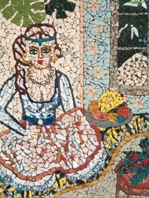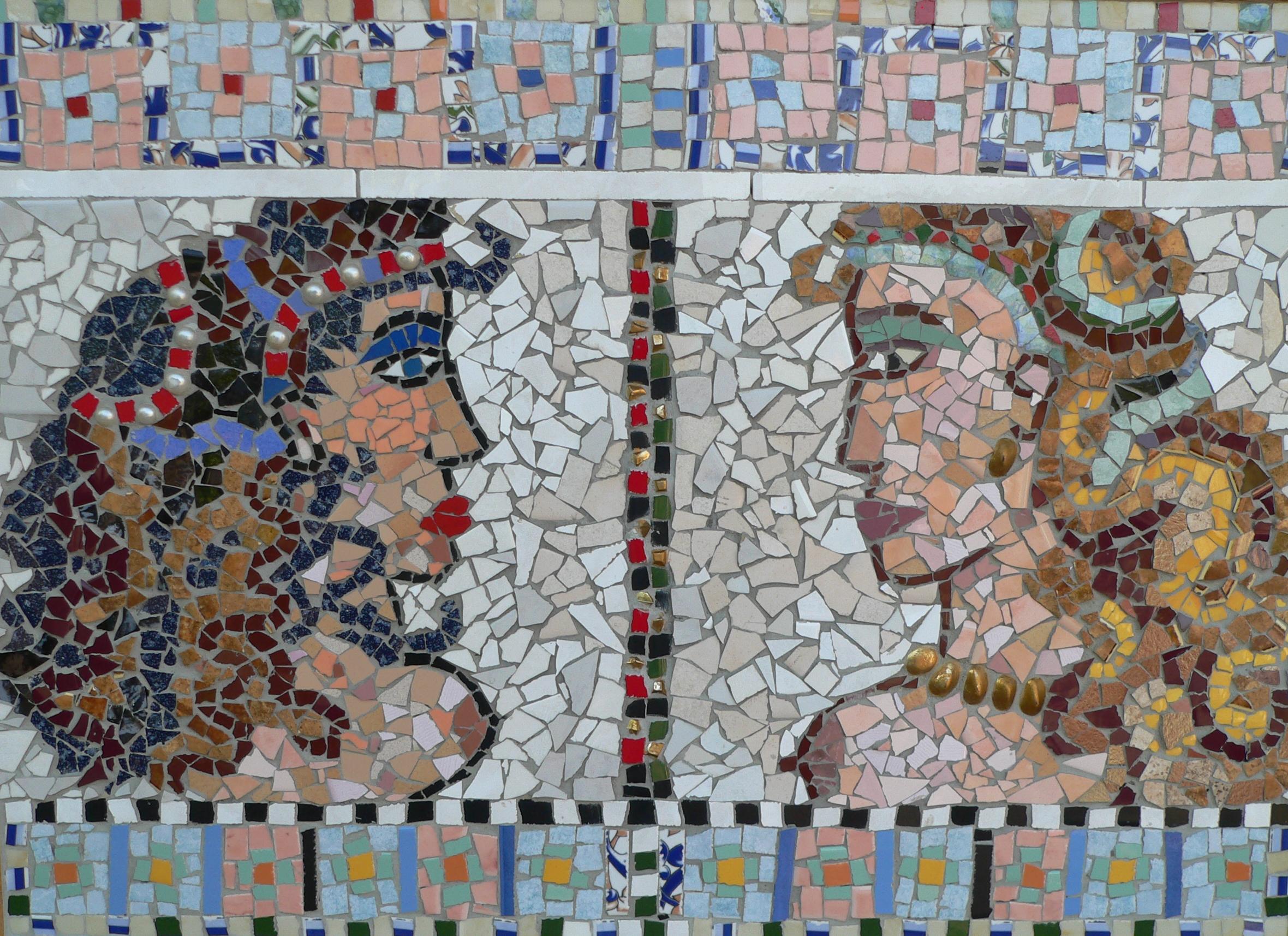 J’ai fait des études classiques qui m’ont donné le goût des mosaïques grecques, romaines et byzantines, c’est mon côté « Antiquité » dont voici un exemple : les deux crétoises. C’est de cette esthétique que j’ai tiré mon logo : Naïade II, Icône.
